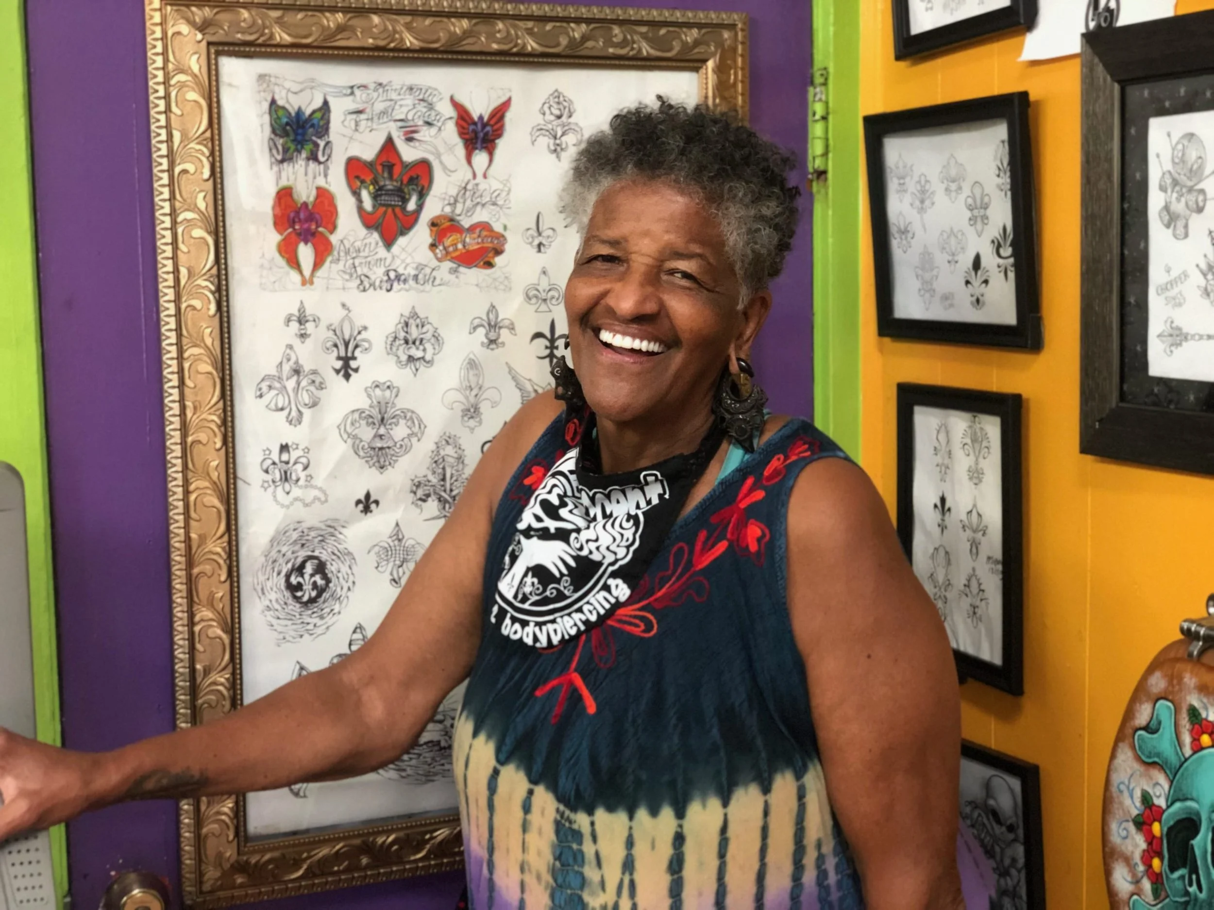 Known as “America’s Tattoo Godmother,” it’s not a stretch to say that “Shanghai” Kate Hellenbrand is American tattoo royalty. Kate stumbled across tattooing in her youth, thanks to her relationship to Mike Malone and their involvement with the first Tattoo! exhibit at the Museum of American Folk Art in NYC. Later She started tattooing with Mike in their apartment (called Cat Fish studio) while tattooing was still illegal in New York. In 1972, she was invited by Norman “Sailor Jerry” Collins to be part of The Council of Seven at the first international tattoo convention in Hawaii. Following the convention, Hellenbrand stayed to work with and learn from Collins. She worked along side many other famous tattoo artists, including Franklin Paul Rogers, Huck Spaulding, Don Ed Hardy, Zeke Owen, and Jack Rudy. Later, she opened her own studio in Austin, Texas called Shanghai Kate’s Tattoos. To date, Kate had the longest running career of any female tattoo artist in North America. Because of her troubles as a female tattoo artist, Kate often mentored younger female artist and cared deeply about preserving tattoo history. She frequented tattoo conventions and gave talks about the evolution of tattoos.